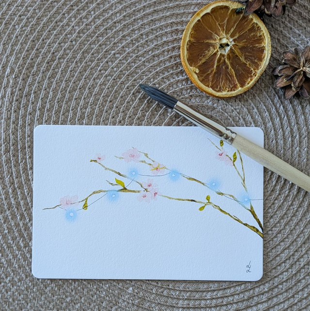 "Sakura d'hiver" Tirage d'art format carte postale avec ou sans inscription "Joyeux Noël"