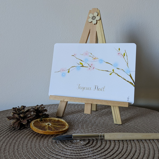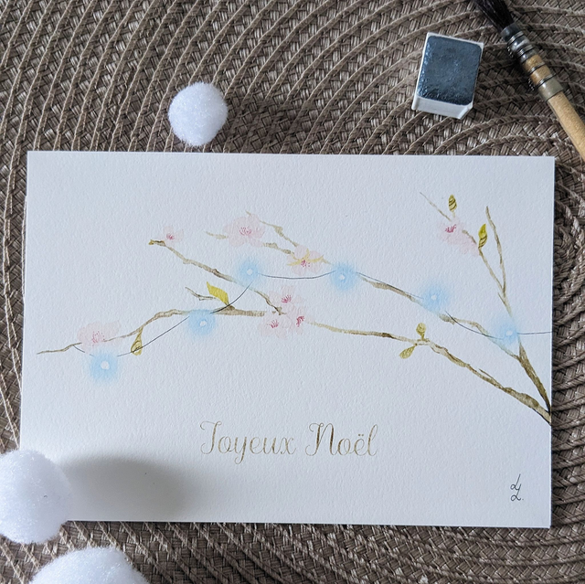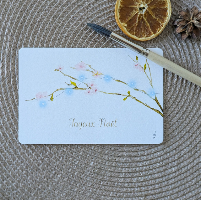 "Sakura d'hiver" format carte postale avec ou sans inscription "Joyeux Noël"